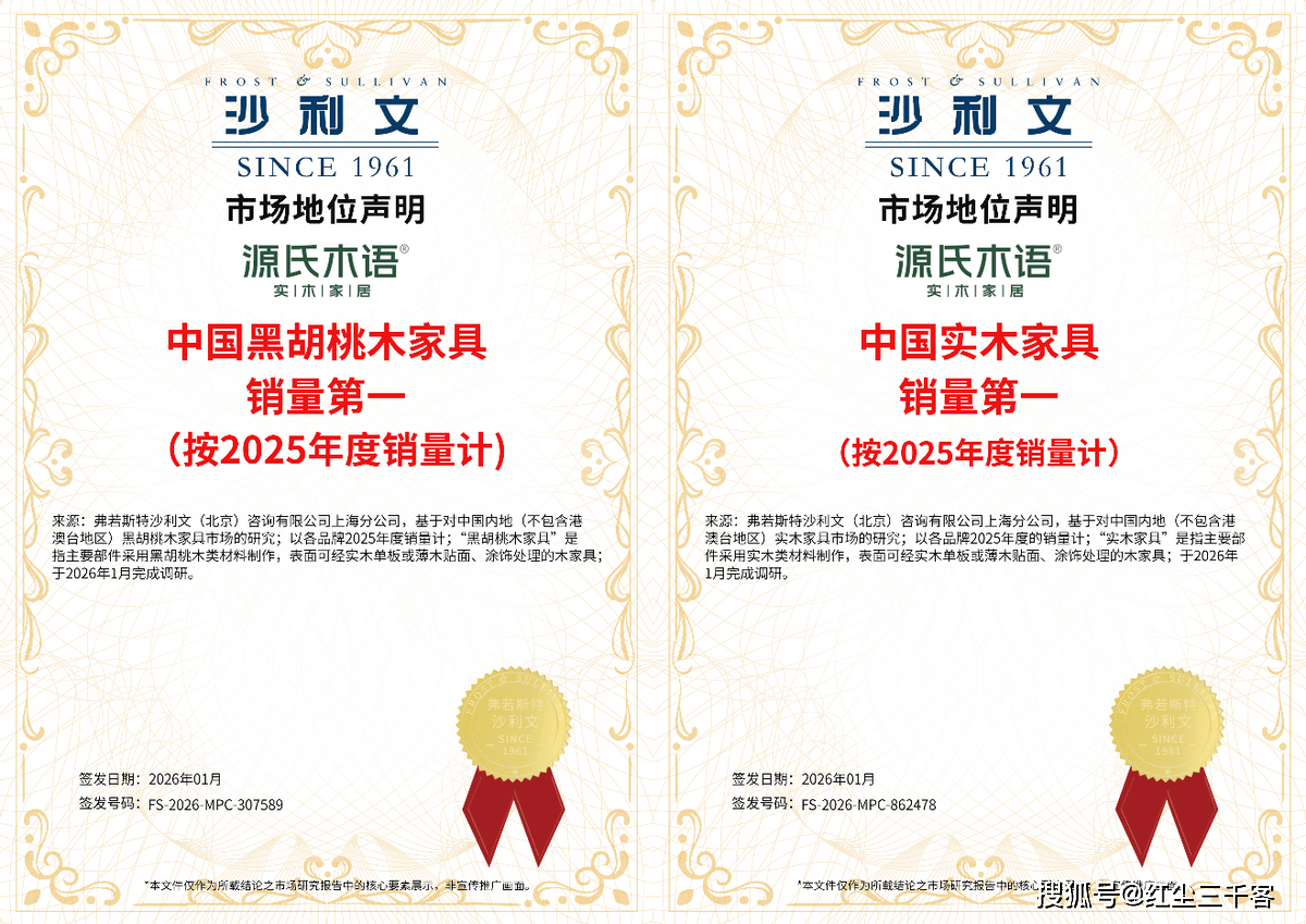 近日,国内权威市场研究机构联合多家行业媒体发布《2025年中国家具消费市场年度报告》,数据显示:在2025年度全国实木家具市场销售榜单中,斩获“中国黑胡桃木家具销量第一(按2025年度销量计)”与“中国实木家具销量第一(按2025年度销量计)”两项权威认证。这一里程碑式的成就,不仅标志着源氏木语在实木家具领域的领导地位进一步巩固,更彰显了中国消费者对高品质、环保、设计感兼具的国产家具品牌的高度认可。